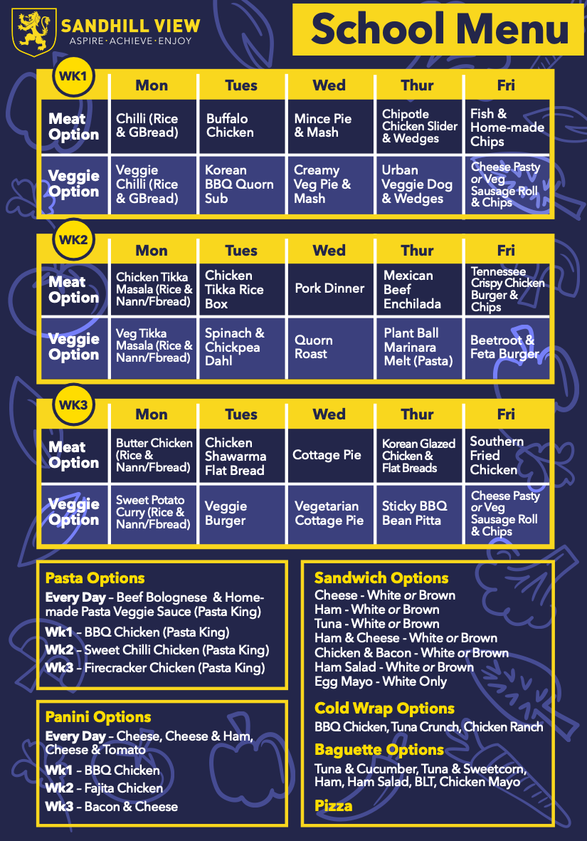 We are committed to providing a healthy and nutritious selection of foods for our students. To achieve this we work to constantly improve a menu of tasty and enjoyable meals that will help promote beneficial eating habits amongst our pupils.